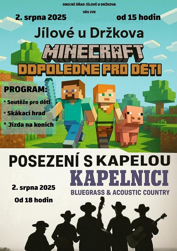 Již odpoledne od 15 hodin připravujeme zábavný program pro děti inspirovaný oblíbenou hrou Minecraft – soutěže, skákací hrad a jízda na koních!
