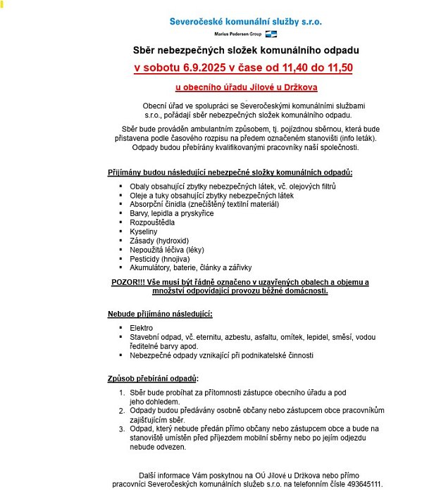 Vzhledem k tomu, že se jedná o svoz nebezpečného odpadu, bude přijímán pouze odpad, který je označen symbolem pro nebezpečný odpad. Odpad typu vodou ředitelné barvy, omítka apod. nespadá do této kategorie. V případě jejich přijetí bude účtován samostatně, neboť není zahrnut do ceníku NSKO.